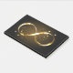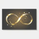 Símbolo infinito de joias Dourado com estrelas douradas sobre fundo preto. Design com estrela dourada.