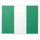 Esta design apresenta a bandeira nacional da Nigéria (oficialmente a República Federal da Nigéria), que é um país da África Ocidental. Ele faz fronteira com o Níger no norte, Chade no nordeste, Camarões no leste e Benim no oeste. A sua costa sul fica no Golfo da Guiné no Oceano Atlântico. A Nigéria é uma república federal composta por 36 estados e o Território da Capital Federal, onde está localizada a capital, Abuja. A maior cidade da Nigéria é Lagos.