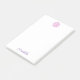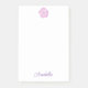 Este painel de notas adesivo apresenta uma pintura digital arrojada de um florescente Lavatera solteiro no topo da página e um nome personalizado roxo na borda inferior em uma fonte com script.
