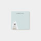 Imagem de um cachorro branco e fofo, do tipo raça Eskimo Spitz, branco-esquimó, no canto inferior esquerdo, colocado em azul claro e sólido. Personalize com seu nome ou mensagem em uma fonte minimalista preta.