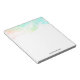 Um bloco de notas com uma borda de abstrato ao longo do topo com cores verdes e azuis giratórias. Um design suave e suave. Uma textura leve de papel aquoso atrás da imagem.