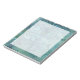 Bloco de notas de 5,5" x 6" com a imagem de um batik azul e verde de tartarugas marinhas a nadar entre uma abundância de plantas marinhas e um espaço escrevendo branco e transparente. Veja toda a coleção de Bloco de Notas Sob o Mar em TOUCHES ESPECIAIS | Seção Favoritos para festas. Este produto não está associado nem afiliado ao titular original dos direitos de autor.