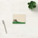 Blocos de notas pegajosos do tema das terras do acampamento ou de acampamento com imagem de uma roulotte e de uma disposição simples do texto você pode adicionar a informações adicionais ou mantê-la simples.