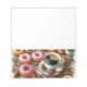 Rosquinhas decadentes em sabores de rega bucal e uma xícara de café fresco preparado. O espeto soa a parte superior deste design.