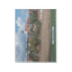 Num campo no campo húngaro, olhando para os montes e edifícios de uma cidade. As nuvens estão no céu azul, mas o tempo permanece ensolarado e quente.