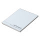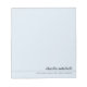 Bloco de notas de cor azul-poeirento claro ou personalizado com uma borda fina entre seu nome e texto personalizado. O texto está alinhado à direita. Fontes e cores podem ser personalizadas com a ferramenta design.