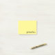 Um bloco de anotações amarelo pegajoso com a palavra 'grata' na parte inferior.