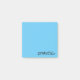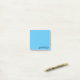 Um bloco de anotações azul adesivo com a palavra 'grata' na parte inferior.