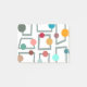 Estas notas de Posto têm uma design moderna do século Médio de trapézio de cinza com círculos coloridos sobre elas.