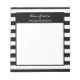 Tome notas para a sua butique de beleza com este bloco de notas preto e branco de listras horizontais largas e preto de tendências e o bloco de notas de salão de beleza. Personalize adicionando o nome de sua butique ou salão de cabelo e beleza e as informações de contato a esse padrão contemporâneo de riscas brancas e pretas.