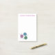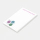 Um bloco de anotações fino de 4 x 6 polegadas para um tricô, decorado com desenho colorido de três bolas de fio e um par de agulhas para tricô. O fio é verde, rosa e azul colorido. Você pode personalizar o bloco de notas com seu próprio nome e palavras. O desenho foi feito à mão e é exclusivo da LyricalSessenta no Zazzle.