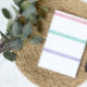 Notas vinculadas personalizadas com três categorias em linhas cor-de-rosa, turquesa, roxa e azul. Coisas para fazer, coisas para lembrar, coisas para comprar. O texto é personalizável para que você possa alterá-lo para o que quiser.
