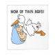 Adorável Mãe do design dos Twin Boys apresentando um carregando de cegonha um cobertor azul com gêmeos bebês e texto preto que diz "Mãe dos Twin Boys!". Mamãe dos Twin Boys mantém caixas, azulejos, ornamentos, notebooks, adesivos, canecas, mousépias, sacos de tote, chaveiros, ímãs e muito mais!