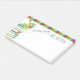 Este bloco de notas Jumbo Posto-it® apresenta um gráfico de um worm bonito em cima de uma pilha de livros. O design é acentuado com faixas de cor primária no topo. No topo da tela lê-se "A NOTE FROM" com texto editável para o nome do professor. Isto faz um presente de excelente para um professor.