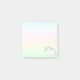 Unicórnio mágico fofo em fundo de cores pastéis. Notas. Aproveite!