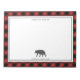 Um bloco de notas com ilustração de um urso preto com design de xadrez de búfalos vermelho e preto. Personalize o texto.