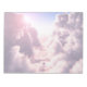 Um balão solitário de ar quente flutua através do canyon rosa pálido entre nuvens torrenciais. O sol, baixo no céu pastel, brilha atrás da borda dos billows, enviando riachos de luz brilhante em direção ao observador.