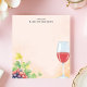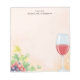 Celebre os prazeres simples com este elegante bloco de notas personalizado. Uma ilustração clássica apresentando um copo de vinho tinto e um cacho de uvas com folhas de videira adorna a parte inferior do bloco de notas. O fundo suave e quente acrescenta um toque de sofisticação. Adicione seu próprio texto personalizado para tornar este um item único e prático. Perfeito para amantes de vinho, listas de compras ou anotar notas de degustação.