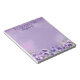Adicione elegância atemporal a notas do dia a dia com este bloco de notas personalizado de violetas roxas florais, projetado para ser bonito e prático. Perfeito para aniversários de adultos, chá de panela, lembranças de chá de bebê ou uso diário geral, este bloco de notas combina charme floral clássico com um layout moderno e limpo.
