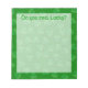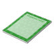 Bloco de notas personalizável de 5,5" x 6" com uma imagem de shamrocks verdes envoltos em verde e um espaço escrevendo branco transparente. Consulte notebook correspondente. Veja a Rua inteira. A coleção do Bloco de Notas do Dia de Patrick sob a categoria OFFICE na seção HOLIDAYS. Este produto não está associado nem afiliado ao titular original dos direitos de autor.