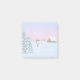 Acrylic painting of a cute snowman admiring a cardinal at sunset on Christmas eve