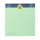 Xadrez de Script Personalizado Tartan Splash Monograma Notepad Verde Elegante, moderno e moderno recurso de notebook personalizável "monograma personalizado" no splash amarelo, Azul Celadon / Tartan xadrez Azul Escuro no topo e "notas personalizadas de nome" no fundo em fundo verde. Personalize este belo bloco de notas como um presente maravilhoso adicionando seu nome ou texto / mudando a fonte, cor, tamanho e posição.