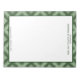 Uma borda de xadrez geométrica verde envolve um espaço de escrevendo de vazio que mede 7" x 9,5" neste bloco de notas grande. Substitua o texto superior para adicionar seu próprio nome e endereço. O texto mais baixo é para você adicionar seu próprio endereço de e-mail e número de telefone à sua correspondência. Use a opção "clique para personalizar mais" para alterar o fundo branco para outra cor.