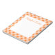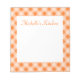 Um vibrante xadrez laranja decora este bloco de notas estilo retrô. Personalize este bloco de notas alterando o texto. O design é de arte original.