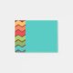 Estas notas de Posto-E têm um design de linhas ziguezaguis dos anos 70 em amarelo, laranja, vermelho, verde e azul num campo de marrom.