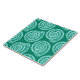 Azulejo cerâmico em padrão de impressão de bloco, baseado em uma concha espiral, em aqua pastel sobre fundo de turquesa/pavão