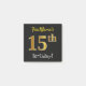 Este simples design de notas apresenta uma mensagem como "Primeiro Nome do 15 de Aniversário!", com o "15" a ter um aspecto de cor falsa/imitação dourada, num fundo de cor preta. O nome pode ser personalizado. Notas como estas poderiam talvez ser usadas como decorações numa festa de aniversário para alguém que comemora o seu décimo quinto aniversário. [~Z0000172]