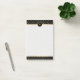 Um design elegante para casa ou escritório, esta nota de posto apresenta uma faixa de padrões de bolinhas douradas sobre um fundo preto contrastante com uma estrutura redonda correspondente e seu monograma personalizado. Simplesmente edite o texto de exemplo com a sua versão inicial. Se precisar voltar a centralizar o monograma depois de editá-lo, simplesmente arraste-o para o lugar com o ponteiro. As cores douradas utilizadas neste design têm sombreamento sutil e destaque para se assemelharem a um aspecto metálico brilhante.