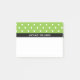 Esta característica popular e à moda das notas de post-it é um design verde e branco chique das bolinhas com um teste padrão preto da listra com um lugar para que você adicione seu próprio nome. O texto feito sob encomenda é imprimido no branco. Se você quer mudar a pia batismal, clique "personalizam-no" botão. As notas deste post-it são um grande presente para o professor da sua criança, ou para seus amigos que são professores. Faz presentes óptimos para estudantes universitários, adolescentes, secretários, etc. Você pode fazer suas lista do mantimento, coisas para fazer, projeta ideias, etc.