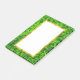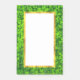 Notas pegajosas de grande tamanho com um design de primavera fresco mostrando um campo de folhas de trevo em um verde natural enxuto com pequenas gotículas de água delicadas. No centro há uma moldura branca com borda de folha de ouro FAUX.