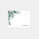 As notas personalizadas em chic apresentam um spray de folhagem de aquarela verde e folhas de eucalipto em cascata do canto superior esquerdo. Personalize com o seu nome ou escolha de personalização no canto inferior direito em caracteres manuscritos de script.