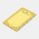 Estas notas de posto de padrão doce de abelhas são perfeitas para a sua "lista do mel" ou qualquer fazer de lista. O design tem uma forma de colmeia com linhas brancas para escrevendo suas listas. Abelhas de mel se entrelaçam em seu pente de mel ao redor das bordas. O centro também tem uma abelha no topo e uma imagem de fêmur de lis amarela ouro no fundo, com espaço para duas linhas do seu texto. Estas notas bonitinhas são perfeitas para um apicultor ou qualquer um que ame estes insetos generosos.