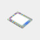 Postar seus notas e lembretes com as notas azuis psicadélicos do Cargo-it® de 3M. Este Cargo-it® bonito e feito sob encomenda nota a característica um design geométrico abstrato azul, amarelo e do vermelho do fractal da arte.