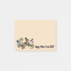 Ilustração gráfica de animais engraçados celebrando com chapéus de topo e gravatas de arco. Você pode escolher a cor do plano de fundo e adicionar nome ou dizer. Cada almofada vem com 50 notas adesivas impressas em cor de cheio. Excelente para favoritos para festas para sua celebração.