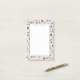 Adicione um pouco de chic à sua mesa com nossas anotações de posto padronizadas por Romance em Paris, apresentando uma borda cor-de-rosa pincelada e pastel pontilhada com torres Eiffel, pássaros, bicicletas, rosas, café, macarões e croissants. Personalize com seu nome ou monograma no topo.