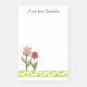 Estas notas têm delicadas tulipas cor-de-rosa e vermelhas e uma borda verde manchada com texto acima para que você personalize.