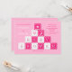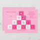 Este convite para chá de fraldas de código de casais foi projetado para o casal que espera uma menina. A design apresenta um belo fundo cor-de-rosa para diversos blocos de bebês, incluindo uma estrela, coração, lua e blocos que soletram as palavras "CHÁ DE FRALDAS". Você pode colocar todos os detalhes do convite ao lado dos blocos de bebês para fazer um chá de fraldas divertido para casais esperando uma garota. Direitos autorais