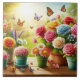Entra num jardim mágico com esta design viva, mostrando uma variedade vibrante de plantas e flores em vasos. Com borboletas fluindo dançando acima e um pano de fundo brilhante, esta peça irradia esperto e alegria, perfeita para adicionar um toque lúdico e encantador a qualquer espaço.