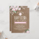 Convite de batismo personalizável com flores de aquarela em fundo de burlap.