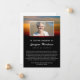 Anúncio da morte com um bando de pássaros voando através de um céu ensolarado com cores brilhantes de vermelho e amarelo e listras de azul. Adicione uma foto do seu amado. Anuncie a morte do seu amado com este belo nascer do sol e o cartão de anúncio do pássaro que você pode adicionar um pequeno obituário junto com uma foto do seu amado.
