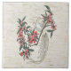 Adicione um toque de elegância às suas paredes ou mesa de jantar com este azulejo de cerâmica feito sob medida que apresenta a pintura digital original de Leslie Sigal Javorek de um faisão branco gracioso, aninhado no galho de uma Árvore de Cereja em flor com vários tons de rosa e rosa com um fundo de latido branco de pássaro.