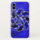 Um abstrato em azul-água e prata. Uma joia azul clara é rodeada por ondas de borda prateada acentuadas por safiras cintilantes e estribos brancos. Os fractais ondulantes e espiralantes no fundo aparecem em cores mais profundas dentro do filigre prateado do motivo da onda.
