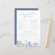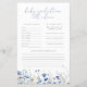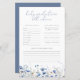 Adicione um toque sincero ao seu bebê em chá de fraldas florescente com este Blue Baby In Bloom Baby Predictions and Advice Game — uma forma fofa e significativa de envolver os seus convidados! Projetado com elementos azuis, florais e flores silvestres, este charmoso cartão de conselho dobra como um guardião para os futuros pais. Os convidados podem compartilhar seus melhores desejos e palpites engraçados ou pensativos neste jogo de predições de bebês engajados, criando memórias duradouras durante seu chá de fraldas. Uma adição perfeita à sua coleção de jogos de chá de fraldas, ela complementa lindamente o seu bebê no tema da floração.
