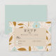 Blue Brown Boho Floral Wedding RSVP Response Card