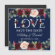 Watercolor Blue Burgundy Floral Love Save The Date Magnecard - Quadrado