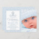 Blue Damask Cross Boy Foto Baptism Convite